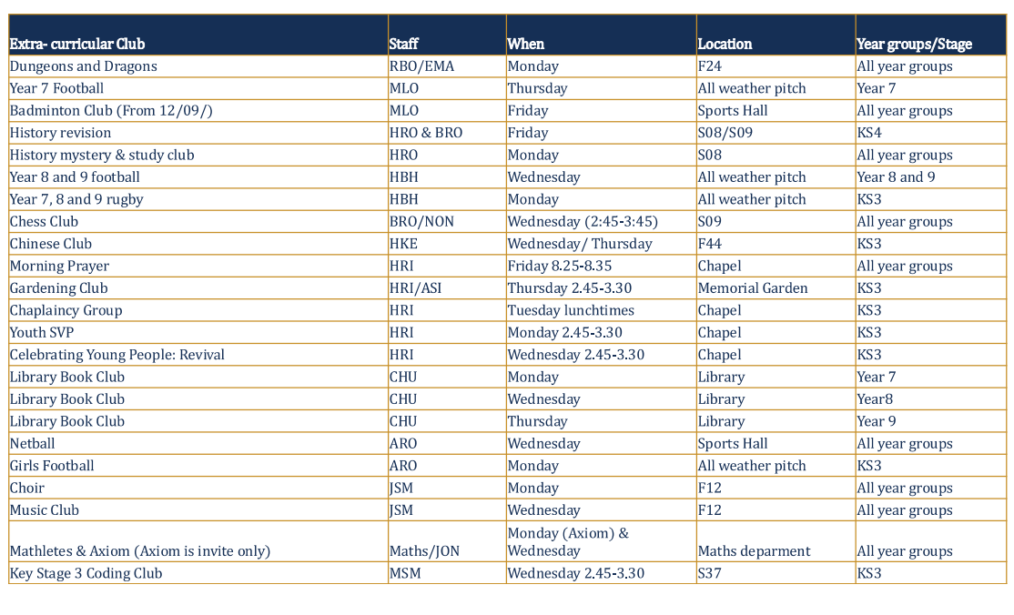 At Saint Edmund Arrowsmith we place a strong emphasis on personal development and there are a range of extra curricular activities on offer to support this, both during the school day and at the end of the learning day.